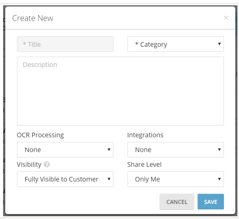 • Share Level:  Select ‘Only Me’ if you are the only one that needs access to this document. Select ‘My Company’ if you want to share it with your Team!